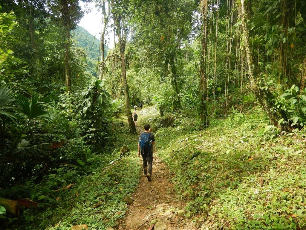 The standard Lost City trek takes 4 days and starts after a two hour transfer from Santa Marta and a hearty lunch in Mamay. The trail is split into 3 hour hiking blocks, each set containing at least one steep uphill climb and one downhill, with a few additional ups and downs along the way. Always hot and humid, when it rains a basic downhill can turn into a mudslide for added challenge (or entertainment!). At times like this a walking pole comes in handy and a good level of fitness is essential. Fortunately the 5am starts mean that most of the day’s hiking is finished before the rain begins.